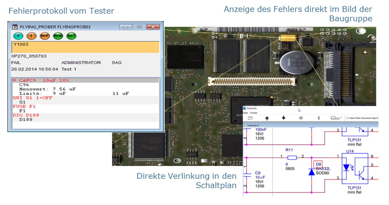 - parallele Anzeige der Fehler im Bild der Baugruppe und im Schaltplan