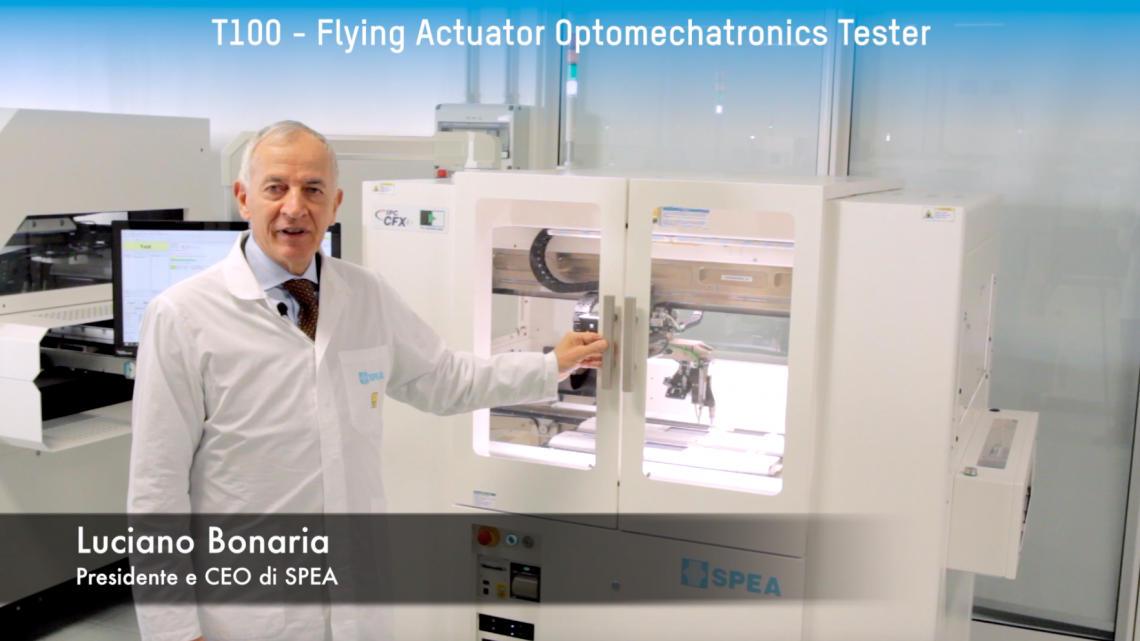 Luciano Bonaria, Presidente & CEO di SPEA, parla del nuovo T100, il primo tester optomeccatronico ad attuatori mobili al mondo, progettato per calibrare e testare qualsiasi tipo di dispositivo, modulo o prodotto con funzioni elettroniche, ottiche e meccaniche